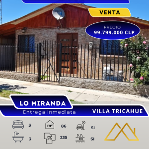 En venta propiedad 3hab 3 baños y piscina Lo Miranda – Región de O’Higgins