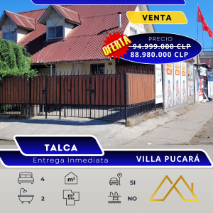 En venta Casa 4 Dormitorios en Villa Pucará– Talca